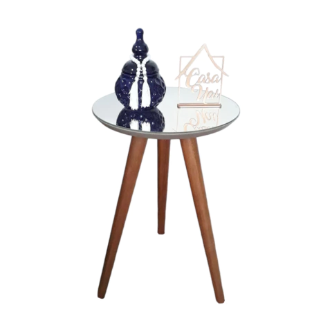 Mesa De Canto Lateral Pé Palito Fendi com espelho 40 cm Diâmetro 60 cm Altura Casa Uai